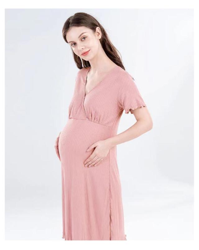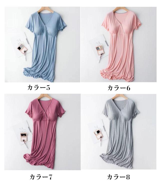 前開き レディース カシュクール ワンピース 授乳口付き 半袖 パジャマ 授乳ワンピース マタニティ 部屋着 産院 マタニティパジャマ 大きいサイズ 春夏 ママ 授乳服 普段着 ルームウェア 入院 授乳 産前 産後