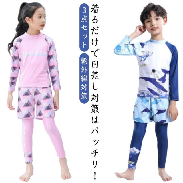 キッズ 長袖 uvカット 上下セット ラッシュガード レギンス 水着 男の子 ショートパンツ 3点セット スポーツウェア フィットネス 体型カバー 女の子 紫外線対策 日焼け予防 プール 海