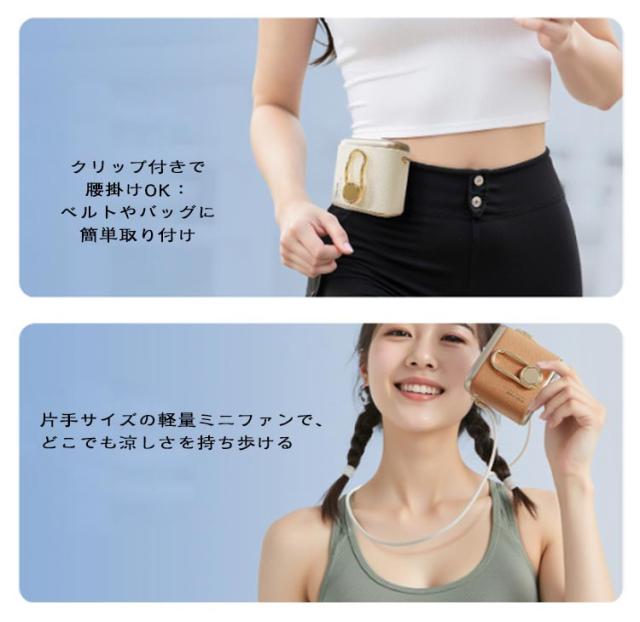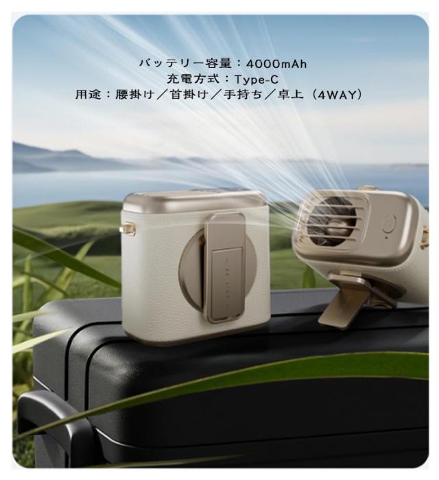 首掛け 腰掛けファン 小型扇風機 ハンディファン Type-C充電 軽量 静音 ベルトファン 腰掛け 4000mAh電池内蔵 手持ち 卓上扇風機 クリップ付き 通学 通勤 アウトドア 腰掛けファン ストラップ付き