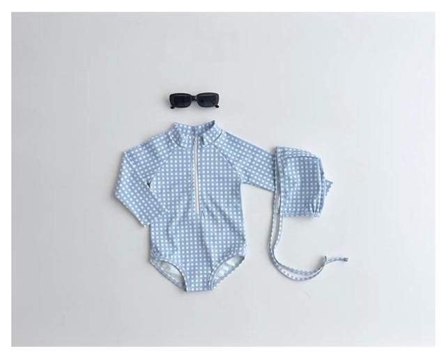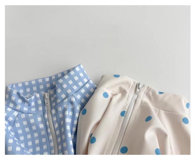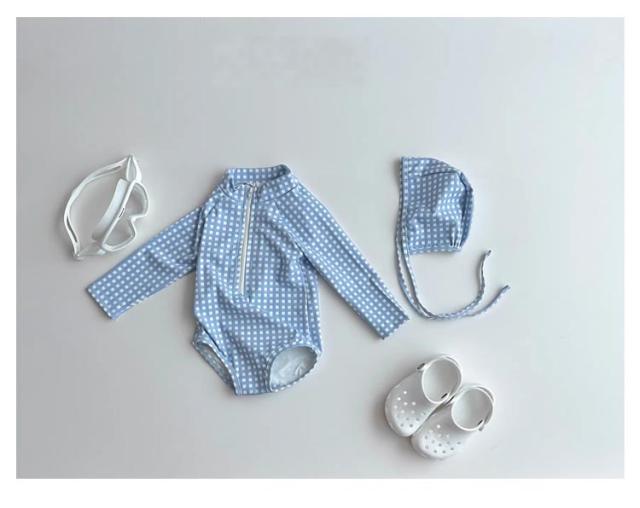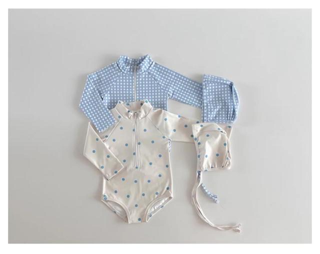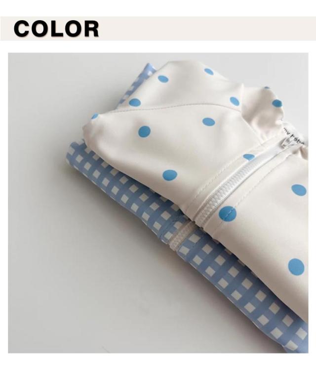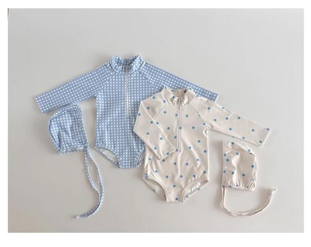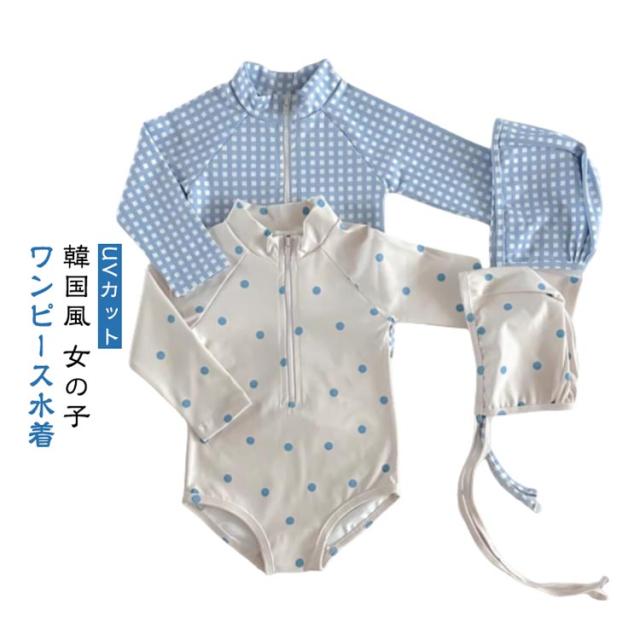 | 韓国風 女の子 ワンピース水着 水遊びもおしゃれに♪ ベビー向けラブリーなドット・チェック柄スイムウェア お揃いのスイムキャップ付き 統一感のあるデザインでさらに可愛く日差し対策! ワンタッチで着脱できるフロントジップ 長袖デザインでしっかり日焼け対策 サラッと速乾・軽量素材 濡れてもすぐ乾くから、冷えにくく快適◎ | |