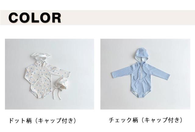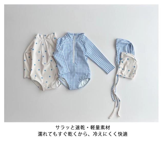 ドット柄 ラッシュガード ベビー ワンピース 幼児 スイムウェア 女の子 長袖 ガールズ水着 女の子 チェック柄 かわいい おしゃれ 赤ちゃん 夏のレジャー UVカット キャップ付き 水遊び 海 プール