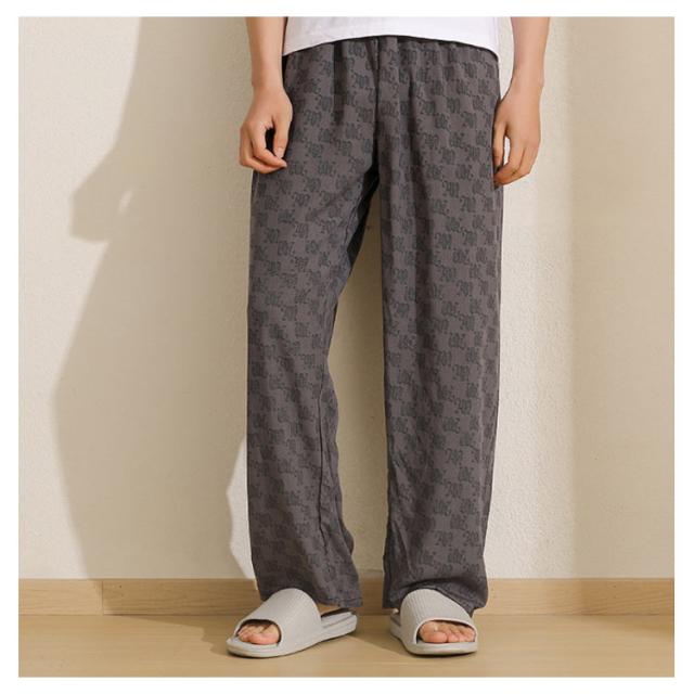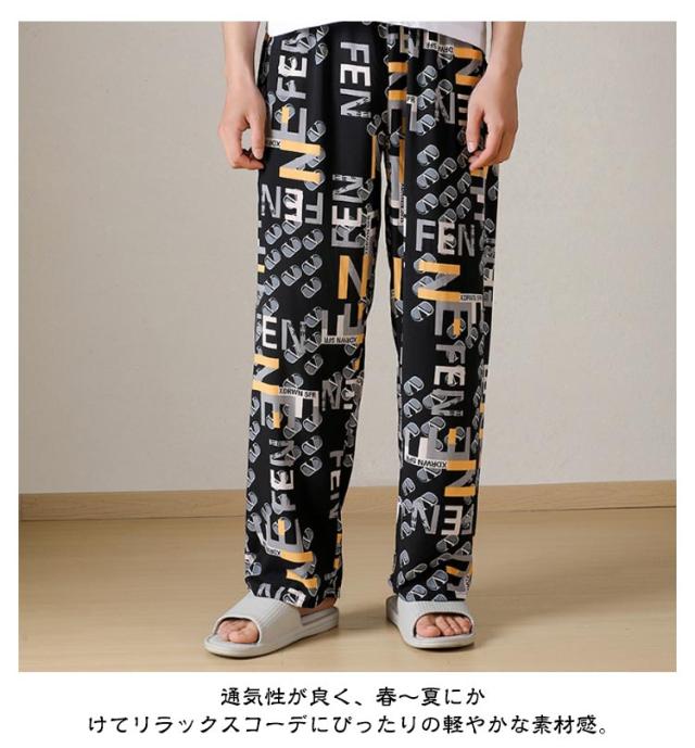 チェック柄 ワイドパンツ メンズ 春 夏 秋 薄手 ひんやり 涼しい パンツ ワイド ロング丈 長ズボン スラックス イージーパンツ 幾何学柄 英語字柄 総柄 ゆったり カジュアル ルームウェア 部屋着 ロングパンツ 【送無】