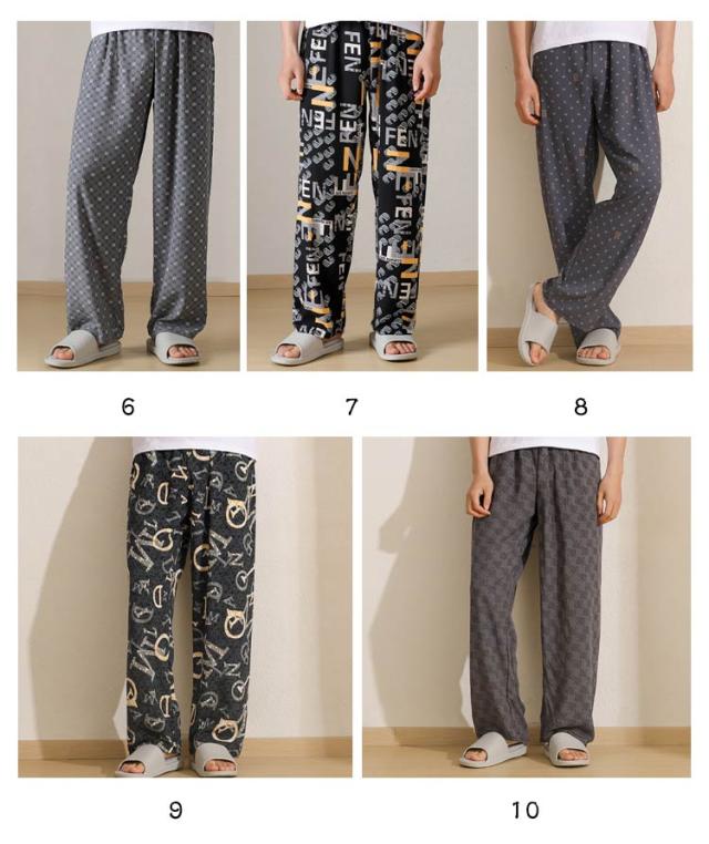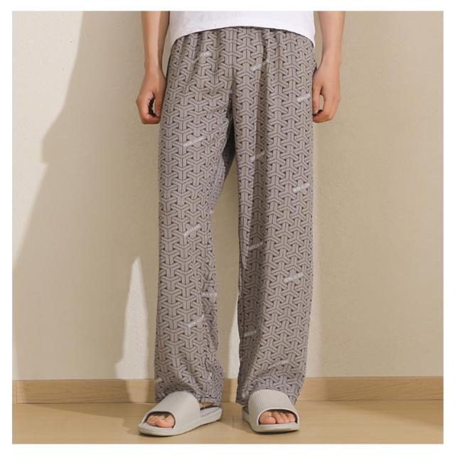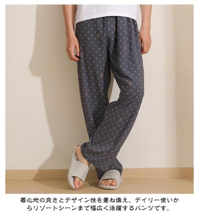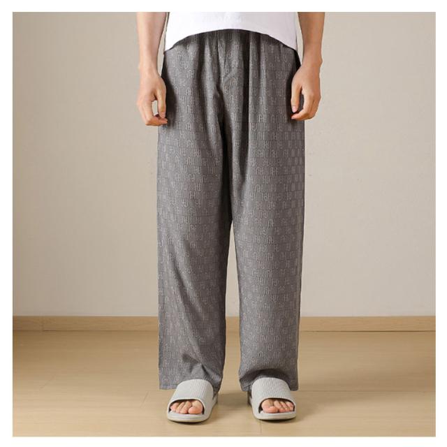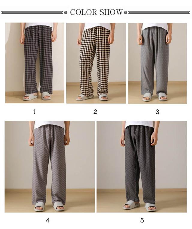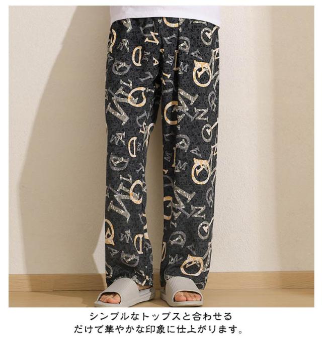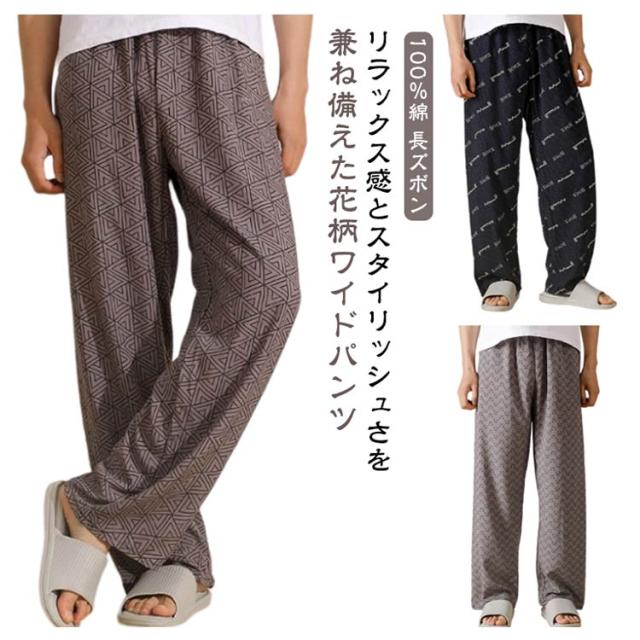 チェック柄 ワイドパンツ メンズ 春 夏 秋 薄手 ひんやり 涼しい パンツ ワイド ロング丈 長ズボン スラックス イージーパンツ 幾何学柄 英語字柄 総柄 ゆったり カジュアル ルームウェア 部屋着 ロングパンツ 【送無】
