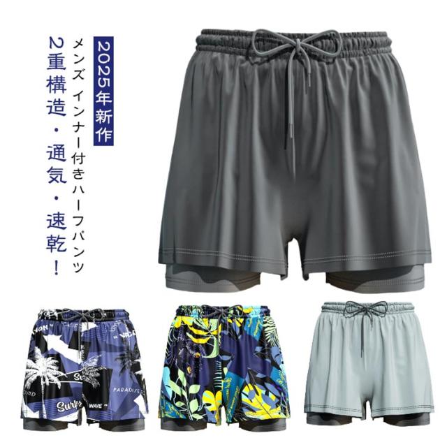 スイムパンツ ボクサーパンツ 無地 ビーチ 速乾 透け防止 シンプル メンズ水着 水陸両用 サーフパンツ インナー付き メンズ水着 旅行 海水浴 レジャー 海水パンツ プール ジム スポーツ フィットネス