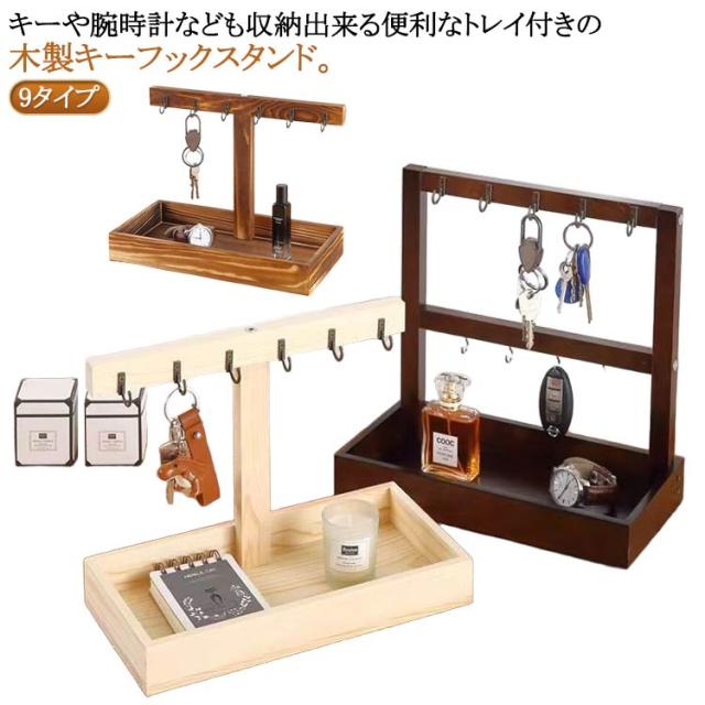 | 9タイプ!キーや腕時計なども収納出来る便利なトレイ付きの木製キーフックスタンド。 スリムでシンプルなデザインだから玄関やリビングなど、置き場所に困りません。 段違いの2段式フックだから上段には鍵、下段には腕時計など、種類によって使い分けできる トレイには指輪やピアスなども置けます。スマートフォンの一時置にも便利です 無駄のないシンプルなデザインでどんなお部屋にも馴染みます。 | |