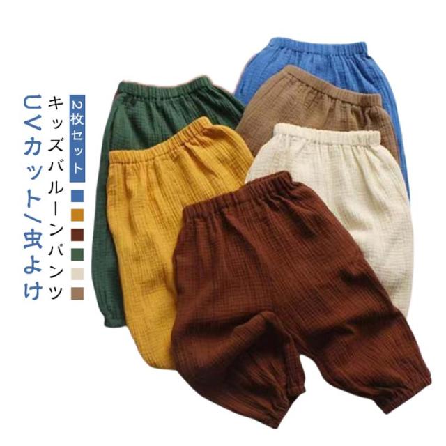 2枚セット ロングパンツ 虫よけパンツ サマーパンツ サルエルパンツ 冷感 ワイドパンツ 涼しい バルーンパンツ キッズ 紫外線対策 長ズボン ベビー服 男の子 女の子 子供服 虫刺され防止 子ども服 ゆったり 2枚セット 防虫