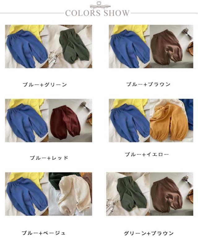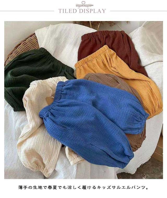 | キッズバルーンパンツ 2枚セット UVカット/虫よけ 薄手の生地で春夏でも涼しく履けるキッズサルエルパンツ。 半ズボンと違い、紫外線や蚊や怪我からも保護されます。 通気性、吸湿性に優れ、ゆったりしたデザインで動きやすく快適です。 トレンド感のあるデザインで幼稚園、保育園の通園(登園)、小学校や学習塾への通学、休日のお出かけ、普段着、お家でのリラックスウエアとしてもおすすめです◎ | |