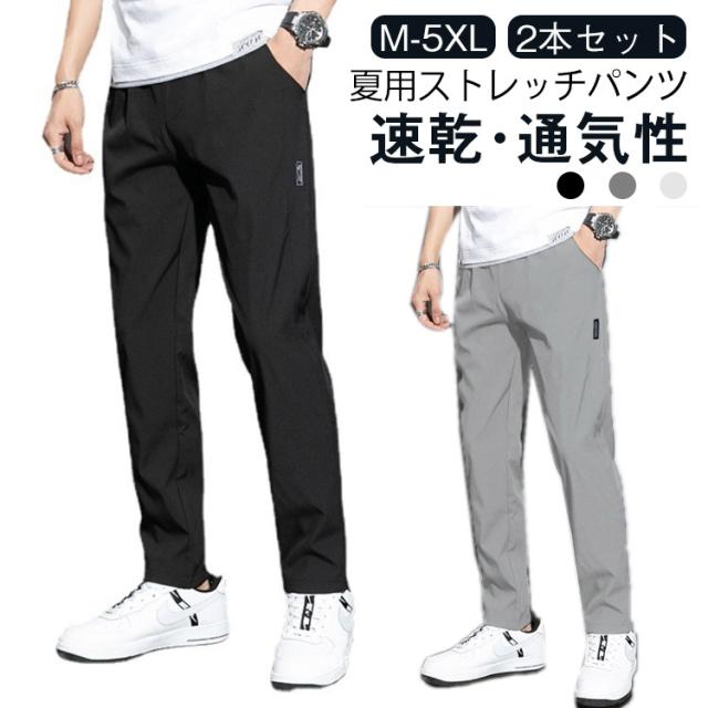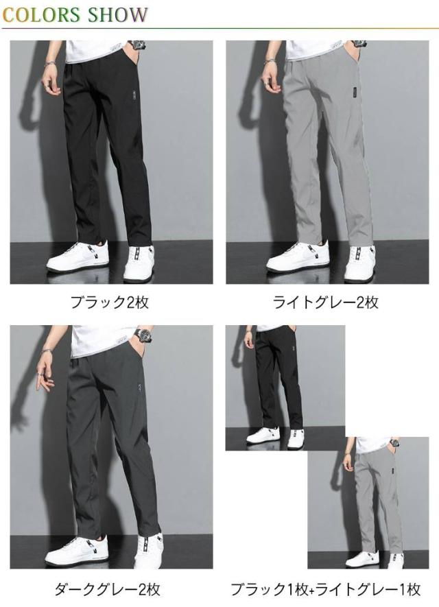 ロングパンツ 長ズボン 接触冷感 ストレッチパンツ 夏服 無地 夏 2枚セット 長ズボン 薄手 uvカット ストレッチ 無地 メンズ 涼しい きれいめ 乾きやすい 速乾 おしゃれ カジュアルパンツ 2枚セット 大人 ビジネス