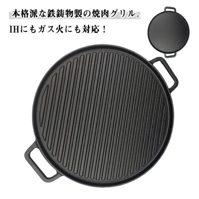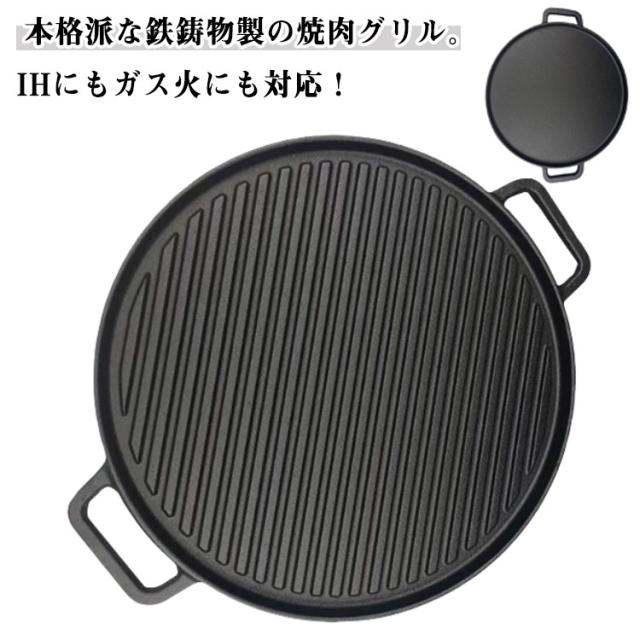 鋳物 鉄板 グリルプレート 焼肉鉄板 省スペース 焼肉グリル 大判 丸型 焼き物 焼肉プレート 溝付き 焼肉プレート 鉄鋳物 鉄 ヘルシー 焼肉 サムギョプサル 韓国焼肉 グリルパン ステーキ ハンバーグ 調理器具 カセットコンロ用