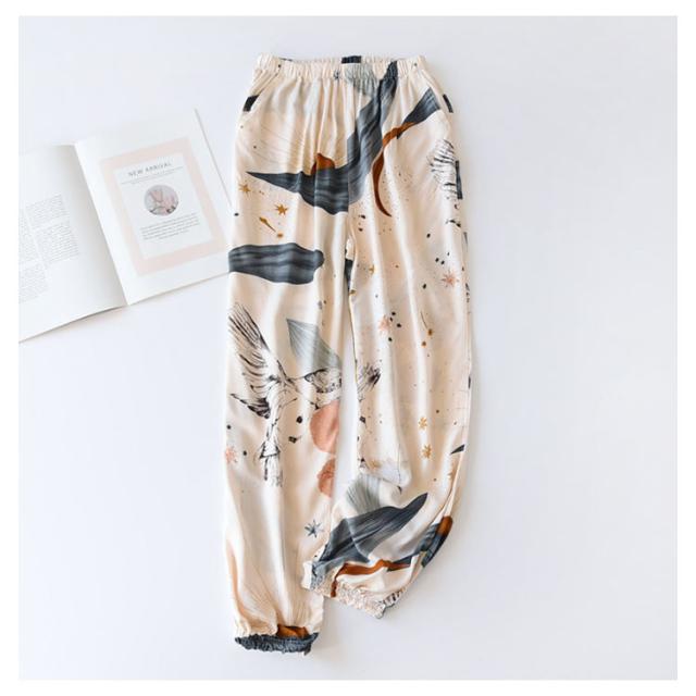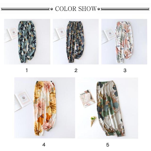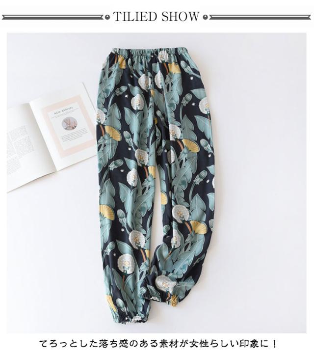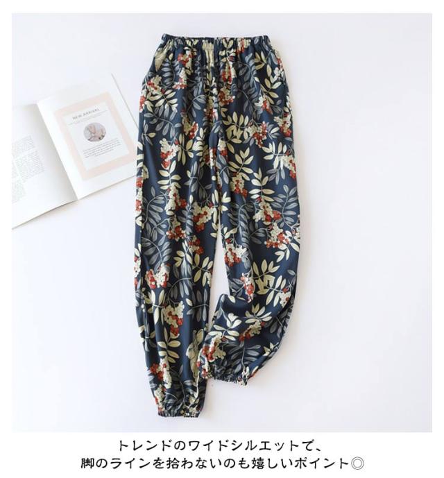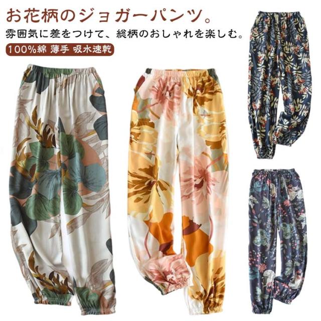 ボタニカル柄 ひんやり ジョガーパンツ ワイドパンツ ボトムス 花柄 夏 吸水速乾 春 薄手 落ち感 レディース ワイド 涼しい パンツ パンツ スラックス 100%綿 ハイウエスト 体型カバー カジュアル ルームウェア ロングパンツ ゴムウエスト ポケット付き リゾート