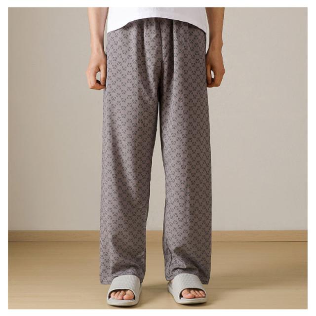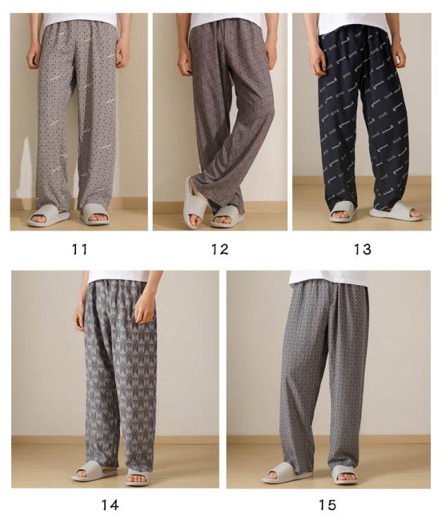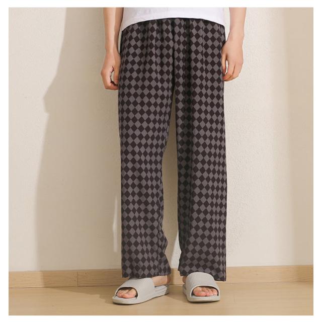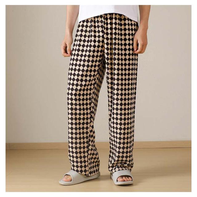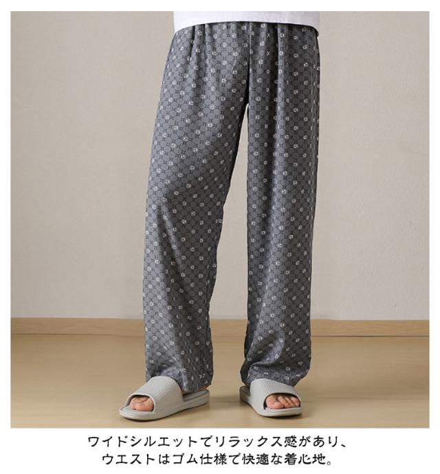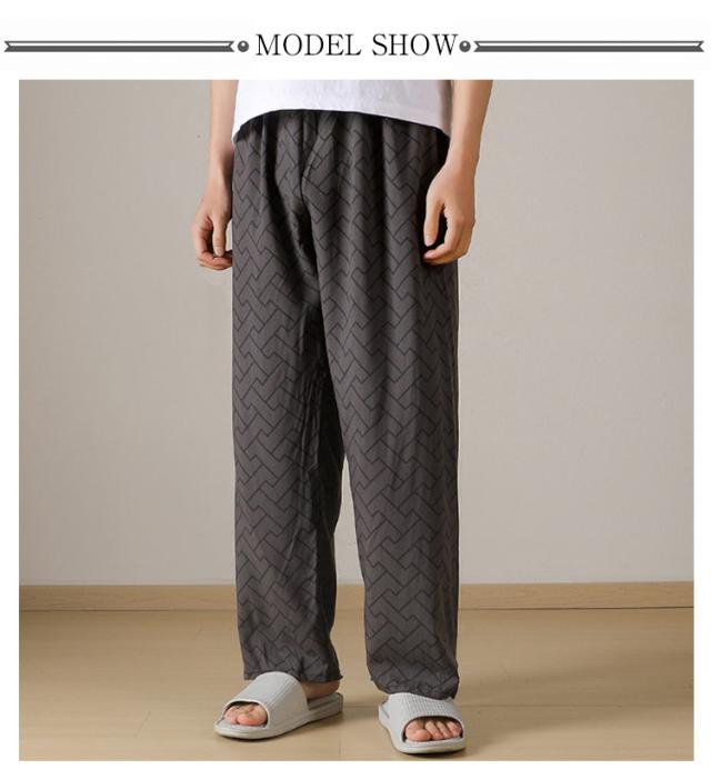 チェック柄 ワイドパンツ メンズ 春 夏 秋 薄手 ひんやり 涼しい パンツ ワイド ロング丈 長ズボン スラックス イージーパンツ 幾何学柄 英語字柄 総柄 ゆったり カジュアル ルームウェア 部屋着 ロングパンツ 【送無】