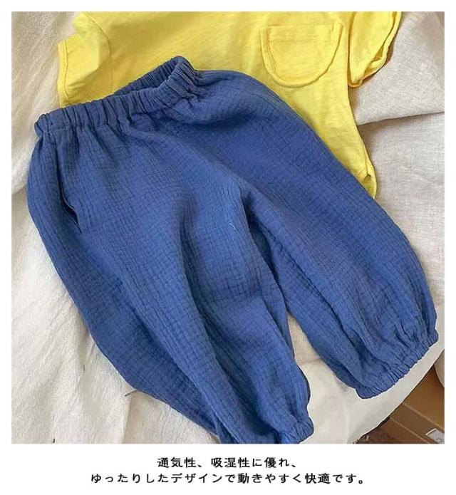 | キッズバルーンパンツ 2枚セット UVカット/虫よけ 薄手の生地で春夏でも涼しく履けるキッズサルエルパンツ。 半ズボンと違い、紫外線や蚊や怪我からも保護されます。 通気性、吸湿性に優れ、ゆったりしたデザインで動きやすく快適です。 トレンド感のあるデザインで幼稚園、保育園の通園(登園)、小学校や学習塾への通学、休日のお出かけ、普段着、お家でのリラックスウエアとしてもおすすめです◎ | |