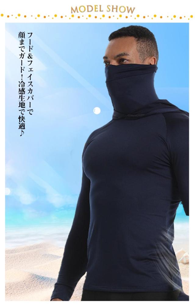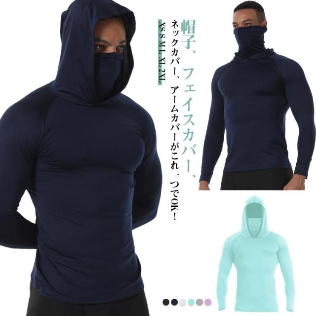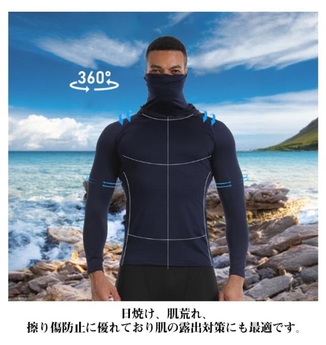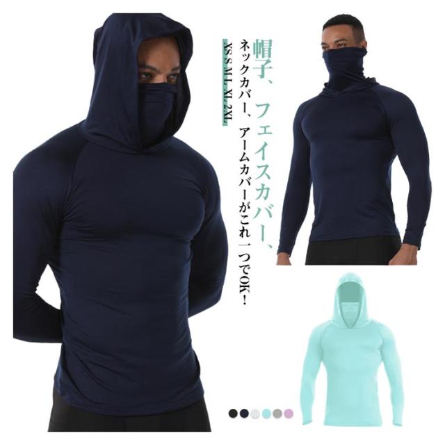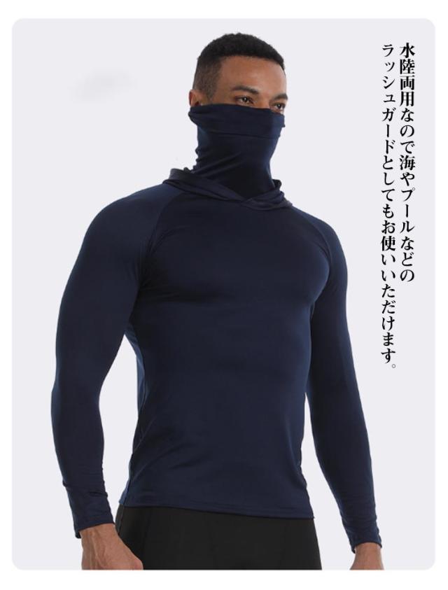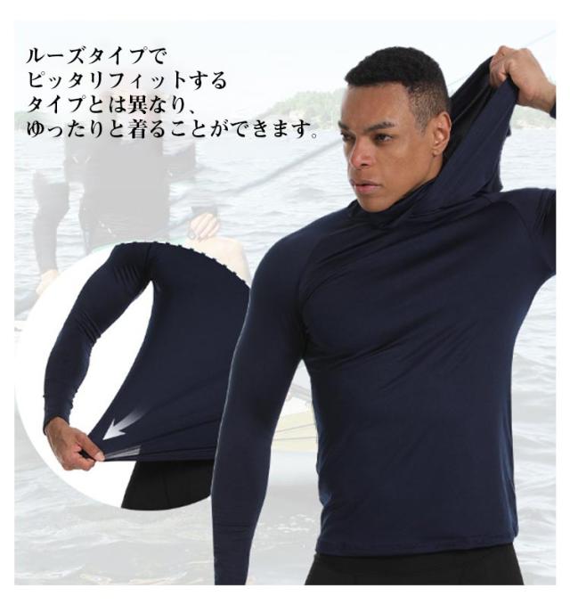 ラッシュガード uvカットパーカー パーカー クール 長袖tシャツ パーカー メンズ Tシャツ フード付き ハイネック インナーシャツ ロンT ひんやり 日焼け防止 スポーツ 作業着 釣り スポーツウェア アンダーシャツ アンダーウェア