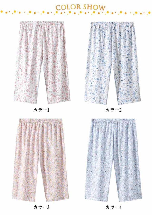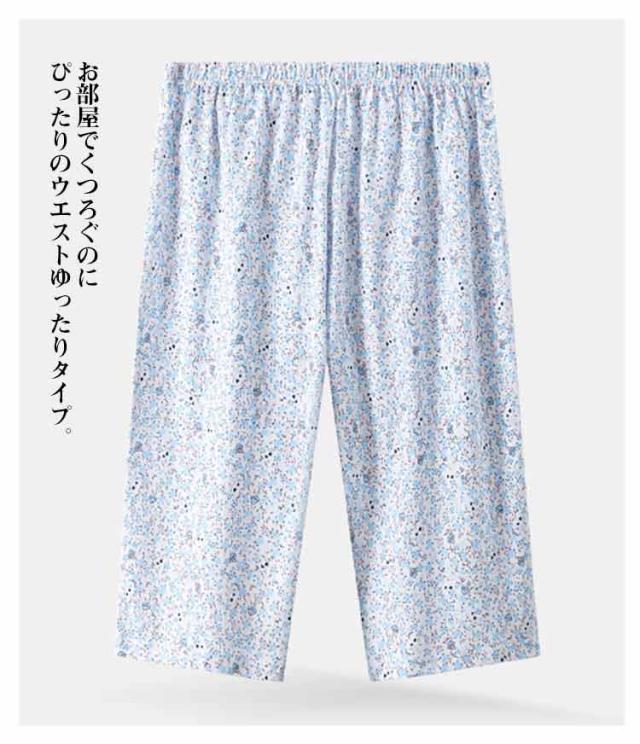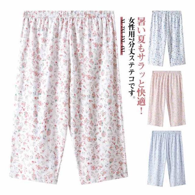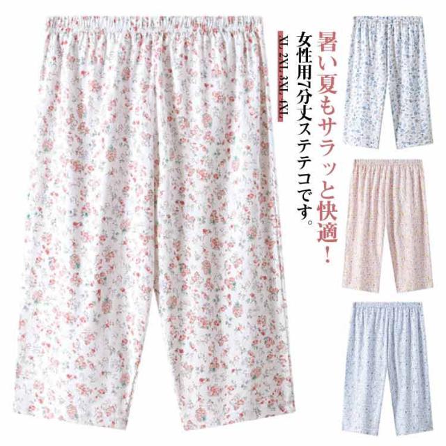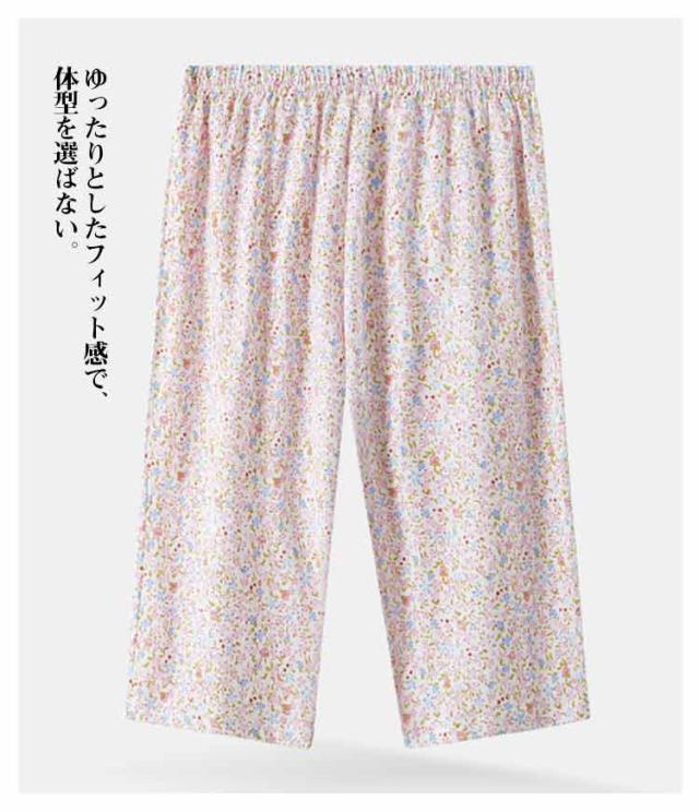 花柄 レディース カプリパンツ ステテコ ひざ下 パジャマ 涼感 ルームウェア 接触冷感 イージーパンツ さらさら 春夏 ひんやり ハーフパンツ 7分丈 レギンス リラックスパンツ 涼しい ルームパンツ ステテコ ワイドパンツ 婦人