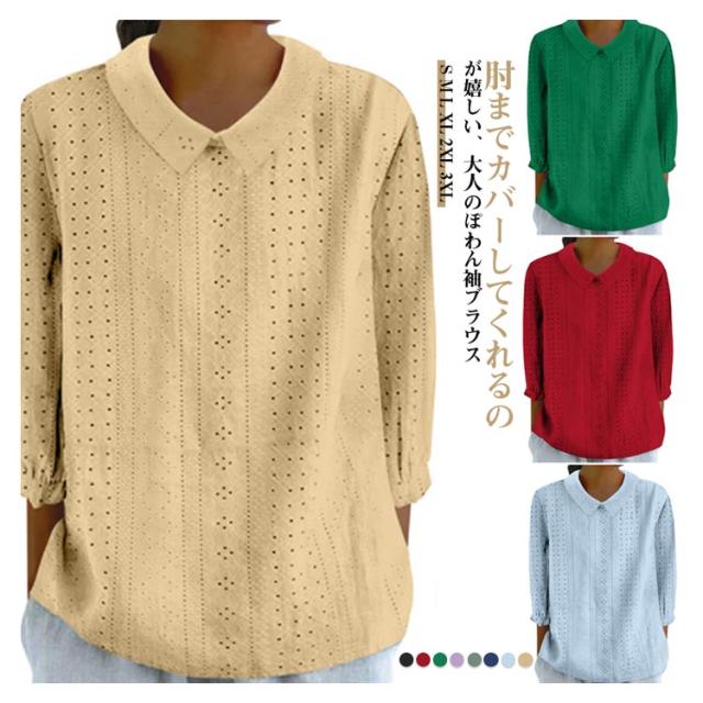 | 肘までカバーしてくれるのが嬉しい、大人のぽわん袖ブラウス 膨らみすぎないシルエットで大人でも気負わず着れる、可愛い1枚。 シンプルなデザインで着回し力があるのも◎ Sから3XLで大きめサイズが豊富!これ一枚でオシャレに着こなせます。 これからの季節にも大活躍に間違いない!ぜひお試しください。 | |
