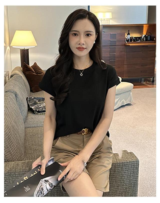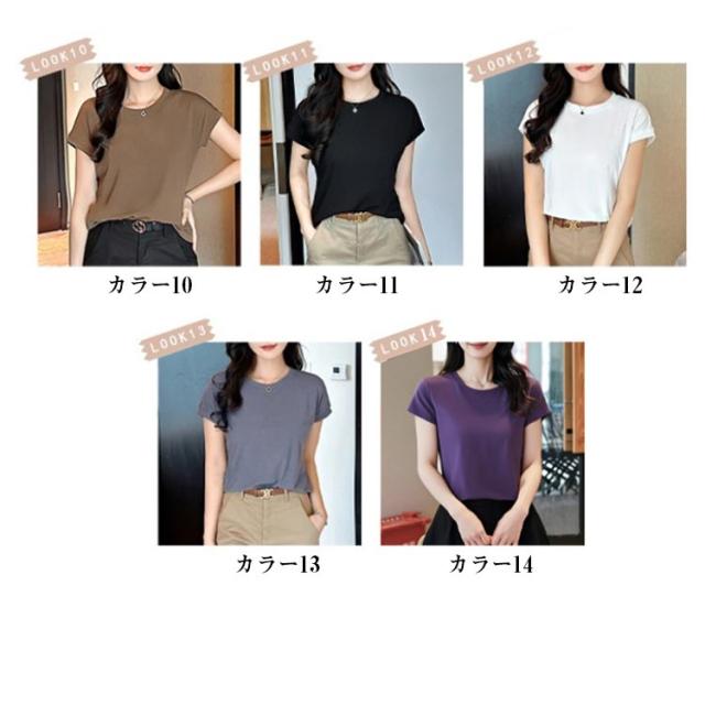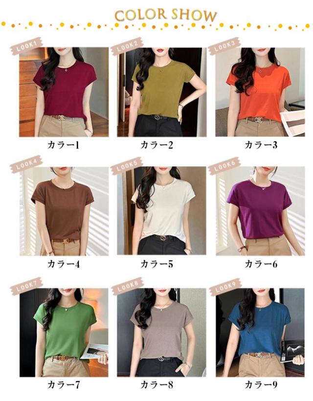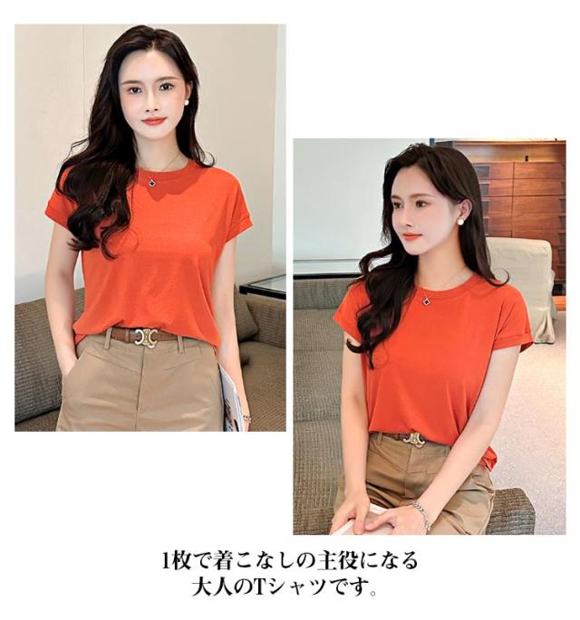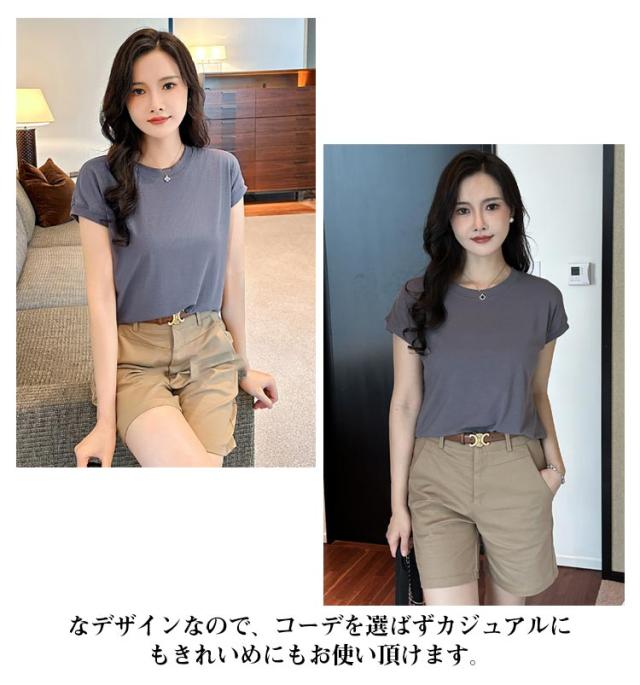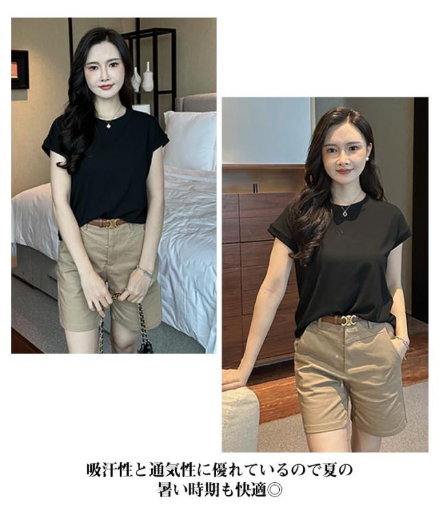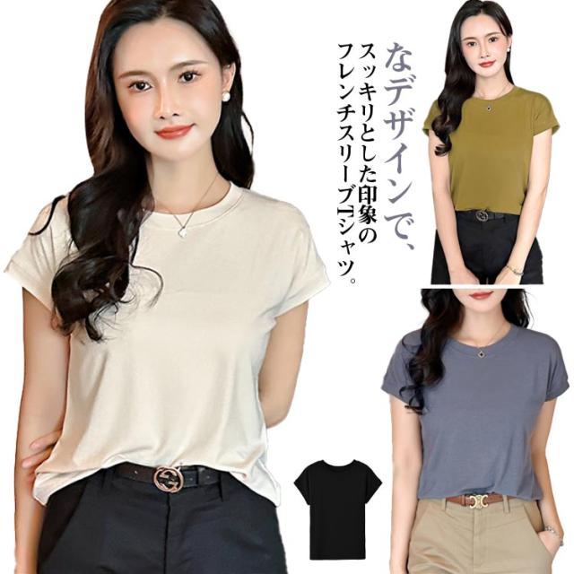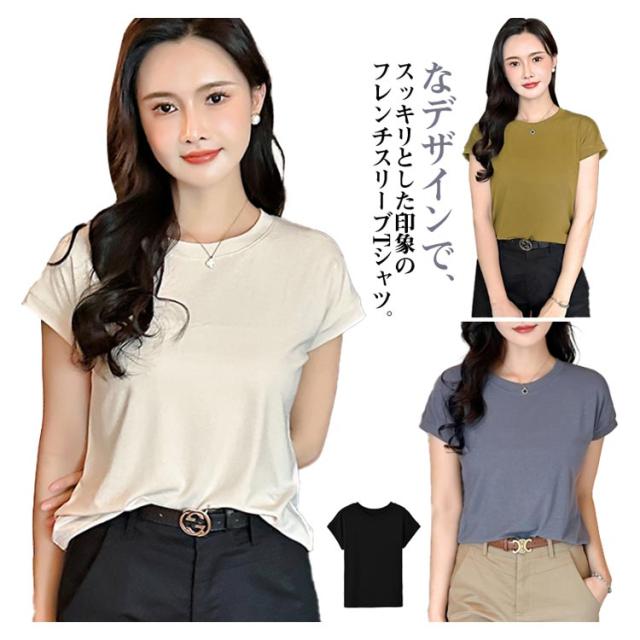 レディース フレンチスリーブクルーネックTシャツ フレンチ袖 着痩せ トップス クルーネック フレンチスリーブ tシャツ カットソー Tシャツ フレンチスリーブクルーネックTシャツ 華奢見せ 大人カジュアル オフィスカジュアル