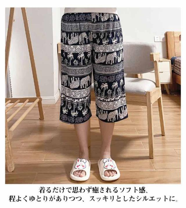 ステテコ ルームパンツ ゆったり ステテコ 伸縮性 部屋着 薄手 ウェストゴム ワイドパンツ ステテコ 薄手 7分丈 春夏 レディース ワイドパンツ カジュアル 総柄 リラックスパンツ サラサラ ゆったり 肌に優しい
