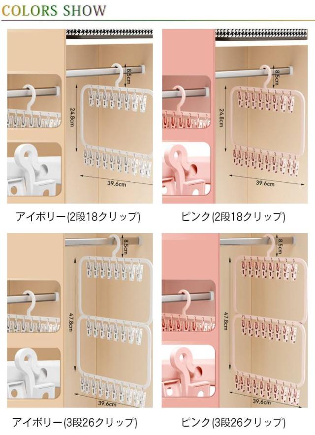 | 色 | ピンク(2段18クリップ) アイボリー(2段18クリップ) ピンク(3段26クリップ) アイボリー(3段26クリップ) |