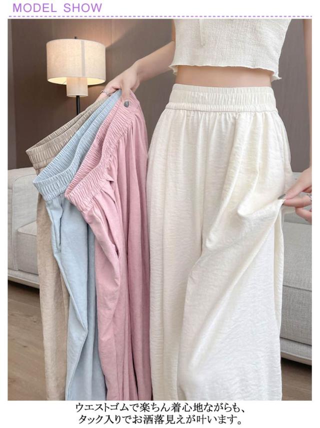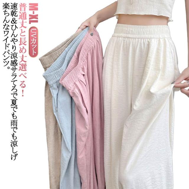 レディース タック入り 低身長 涼感 イージーパンツ 冷感 ゆったり さらとろ涼感 夏 パンツ 夏 ワイドパンツ ガウチョパンツ タック ワイドパンツ 大きいサイズ 長さ選べる 高身長 ボトムス UVカット 日焼け止め 速乾 旅行 低身長 きれいめ 春服 カジュアル