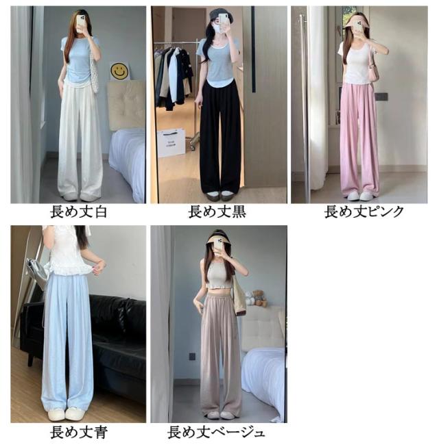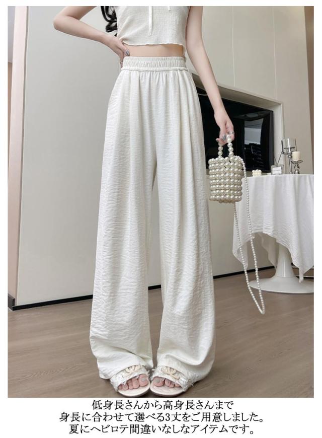 | 普通丈と長め丈選べる!速乾&ひんやり涼感サラてろで夏でも雨でも涼しげ楽ちんなワイドパンツ。 ウエストゴムで楽ちん着心地ながらも、タック入りでお洒落見えが叶います。 さらとろの涼感素材は速乾性にも優れ、汗を掻いても張り付きにくく、夏でも快適な着心地。 低身長さんから高身長さんまで身長に合わせて選べる3丈をご用意しました。夏にヘビロテ間違いなしなアイテムです。 | |