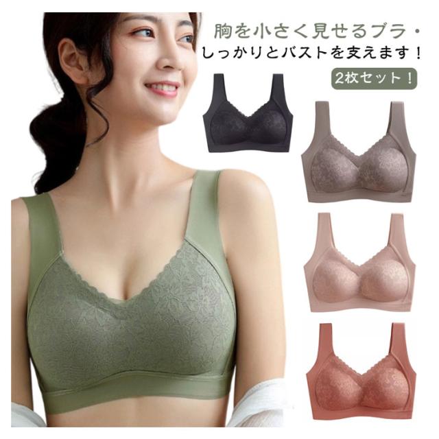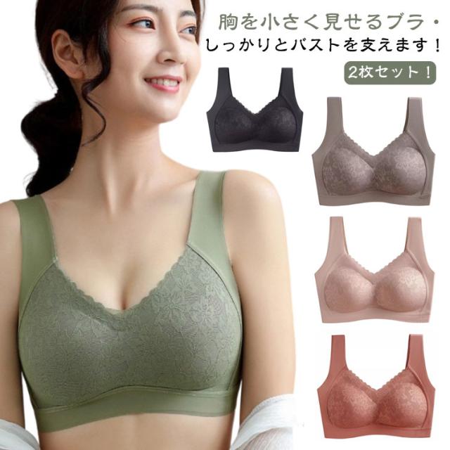 小さく見せるブラ 2枚セット インナー ブラ インナー 小さく見せるぶら シームレス 大きな胸を小さく見せるブラ 見せる ちいさく見せるブラ 小さく見せるブラジャー ブラジャー 薄い