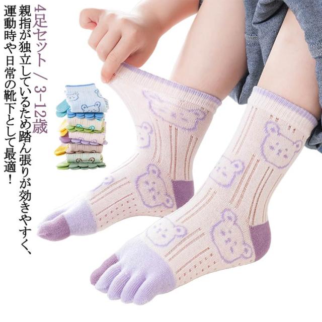 | 4足セット / 3-12歳 親指が独立しているため踏ん張りが効きやすく、運動時や日常の靴下として最適! | |