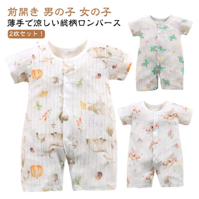 ベビー 半袖 ロンパース 半袖ロンパース 夏 女の子 男の子 前開き 薄手 綿 ロンパース 2枚セット 新生児 半そで 子供服 赤ちゃん 全開き ベビー服 肌着 夏服 出産祝い 出産祝い ギフト プレゼント コットン 新生児服 春