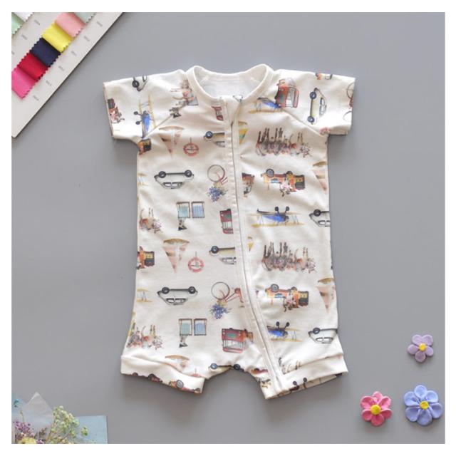 チャック ロンパース 赤ちゃん 春 ジップアップ 前開き カバーオール 新生児 男の子 夏 ロンパース コットン ベビー服 半袖ロンパース ジッパー ボディスーツ ベビー 退院着 ベビーロンパース おしゃれ 半袖 綿 ストラップ スワン 車 星 スター