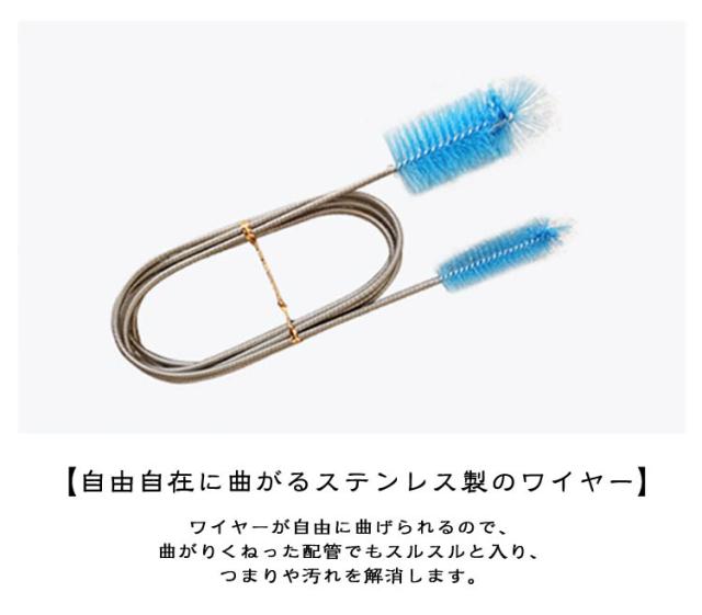 ワイヤー 【1.55m×2本セット】 アクアリウム 【1.55m×2本セット】 掃除 ステンレス 水槽 排水管 洗浄 ロング ブラシ 排水口 パイプクリーナー ホース フレキシブル パイプクリーナー パイプブラシ つまり 詰まり解消