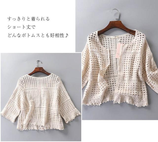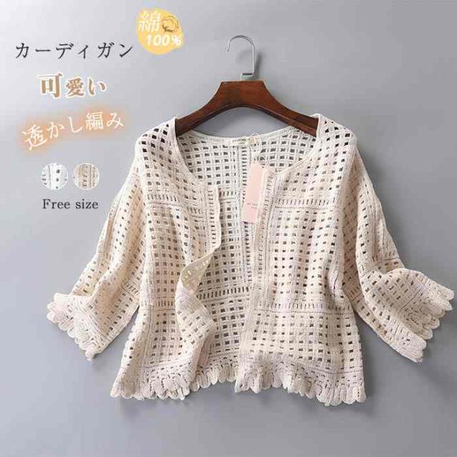 キーワード 送料無料 綿100% カーディガン 薄手 透け レディース 夏 透かし編み 可愛い レース カーディガン 9分袖 フレア ショート丈 春 夏 きれいめ コットン 羽織り UV 紫外線対策 ゆったり トップス 重ね着 はおり エアコン きれいめ レース 涼しい 冷房対策 uvカット 透け感