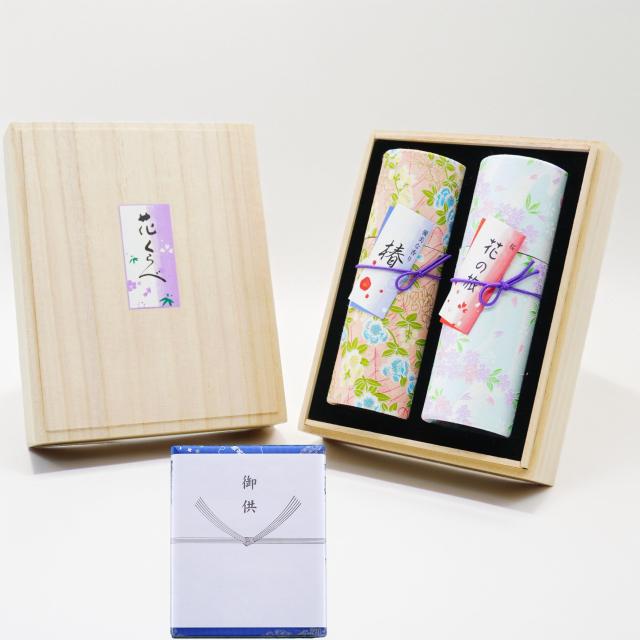 花くらべ二種香 (桜・優美な香り) お線香セット 高級桐箱入り 煙の少ない微煙タイプ 包装・御供入り熨斗付き お盆・喪中・喪中御見舞・ギ