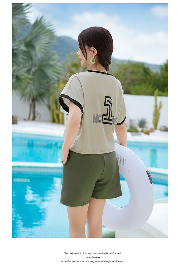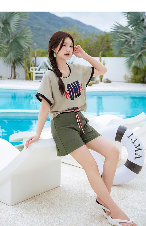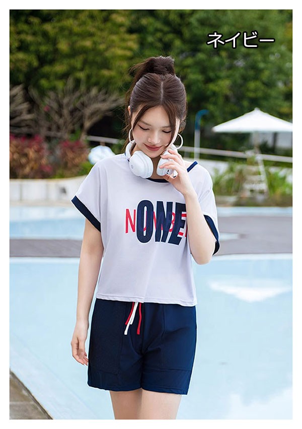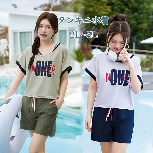 タンキニ水着 タンキニ レディース 服みたいな 体型カバー 3点セット ラッシュガード ママ水着 セパレート 大きいサイズ 6L 7L 8L ぽっちゃり 中学生 高校生 ショートパンツ ネイビー グリーン mg006m5m5ld