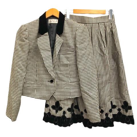 【中古】BOUTIQUE セットアップ フォーマル ジャケット スカート ウール チェック 9 黒 ブラック 白 アイボリー レディース