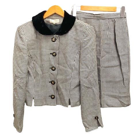 【中古】IL GUSTO フォーマル セットアップ ウール混 シルク混 千鳥格子柄 38 黒 ブラック 白 ホワイト レディース