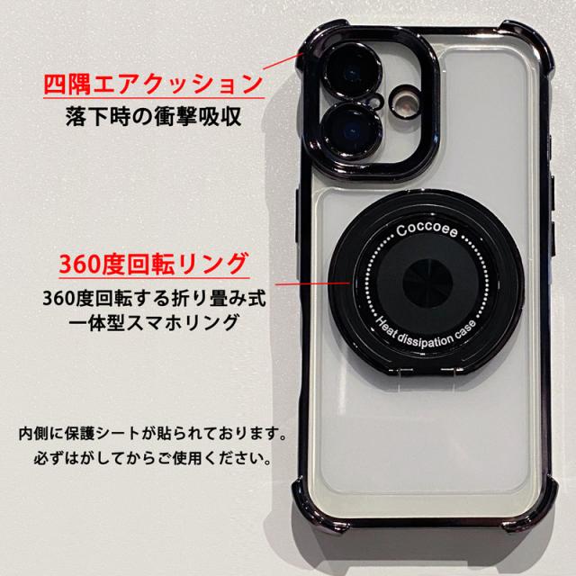 ※ご注文の際には機種・カラー間違いにご注意ください。 【スタンド機能 スマホリング一体型】 360度回転する一体型スマホリングが取り付けられております。 スマホ操作時に指にリングを通していただければ落下防止に役立ちます。 【一体型Magsafe対応リング】 ケースと一体型となったMagsafe対応折り畳み式リングが取り付けられております。 ※ワイヤレス充電には対応しておりません。 【ストラップホール】 側面下部にはストラップホールがございますので、お好きなストラップを付けることができます。 【カメラレンズ保護】 カメラレンズ部分は覆われております。 擦り傷・汚れ防止になります。 【四隅エアクッション】 落下時の衝撃を吸収し端末を守る四隅エアクッション仕様となります。 【スリムフィット】 薄型軽量ケースで手触り感も抜群です。 ケース下部スピーカー部分はカバーされており、ホコリ防止仕様となります。 【TPU素材の特徴】 高透明度のTPUケースは衝撃に強く丈夫です。 柔軟性があるTPUバンパーは装着時に端末本体を傷つけることなく簡単に着脱が可能です。 【背面透明ケース】 背面クリアケースでスマホ本体のカラーも楽しめます。 内側には保護シートが貼られておりますので必ずはがしてからご使用ください。 【高級感のあるデザイン】 艶のある縁取りとカメラ枠・サイドボタン部分のメタリックがきらりと輝くおしゃれなケースです。 つるりとした光沢感がある背面カラー部分との組み合わせで高級感のあるエレガントなデザインです。 |