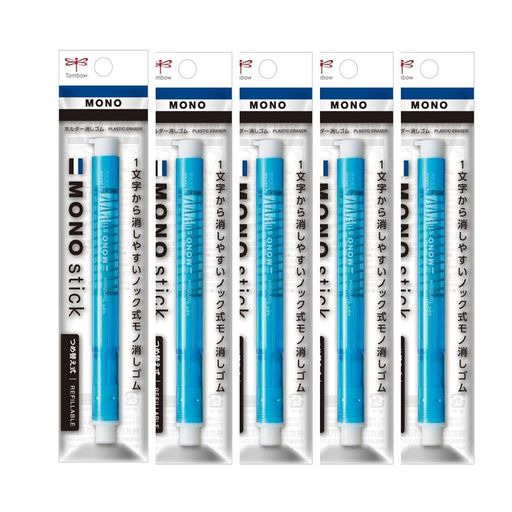 トンボ ペン型消しゴム MONO モノ スティック ブルー 5本 ノック式 ホルダー JCC-121B-5P