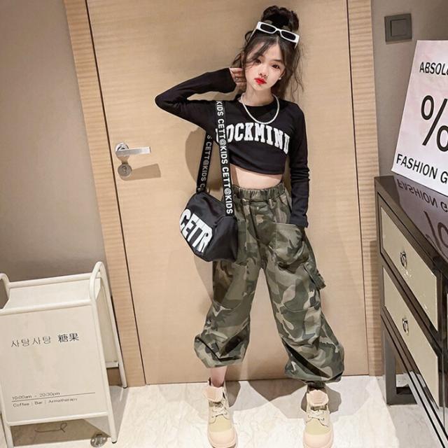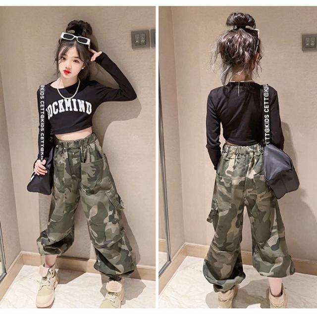 カーゴパンツ 迷彩パンツ 女の子 男の子 長ズボン キッズ ジュニア 子ども服 ダンス衣装 ダンスパンツ 子供服 演出 舞台服 運動 カジュアル パンツ 110 120 130 ロングパンツ