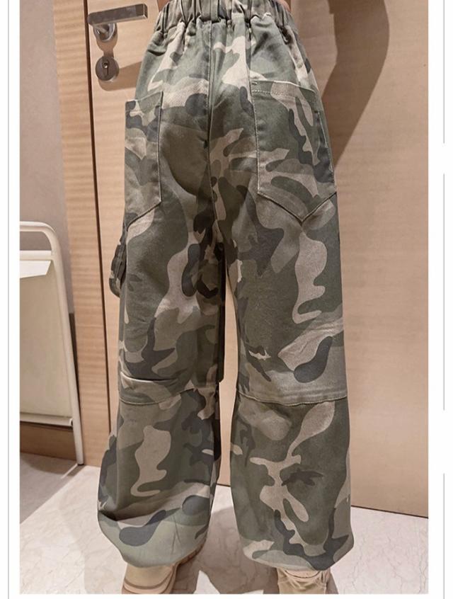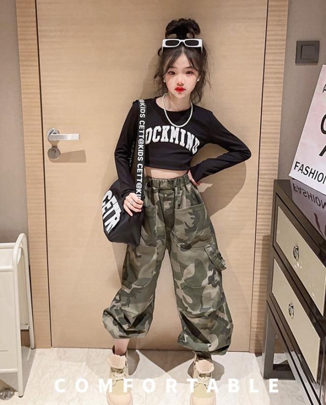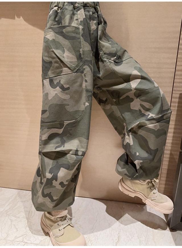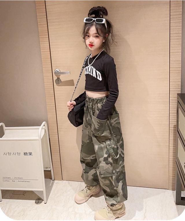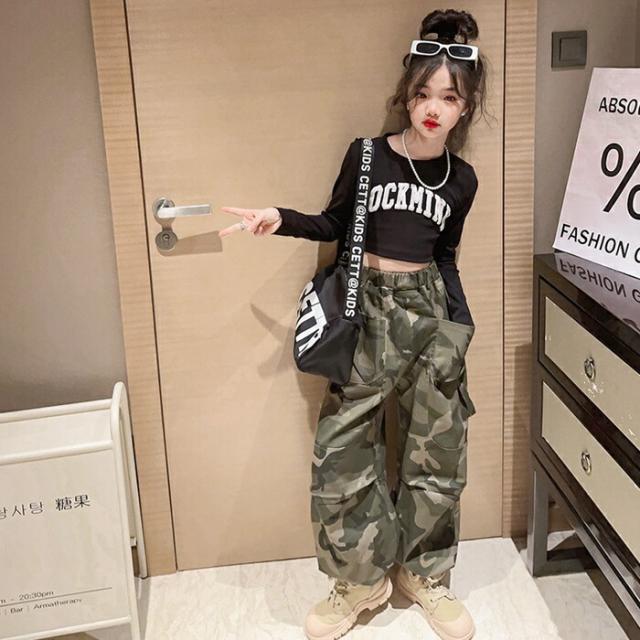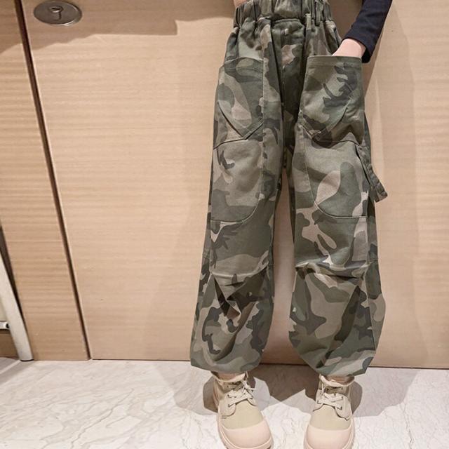 子供服 ボトムス 長ズボン 小学生 迷彩パンツ ワイドパンツ キッズ 迷彩パンツダンス衣装ズボン 普段着 通学着 お出かけ