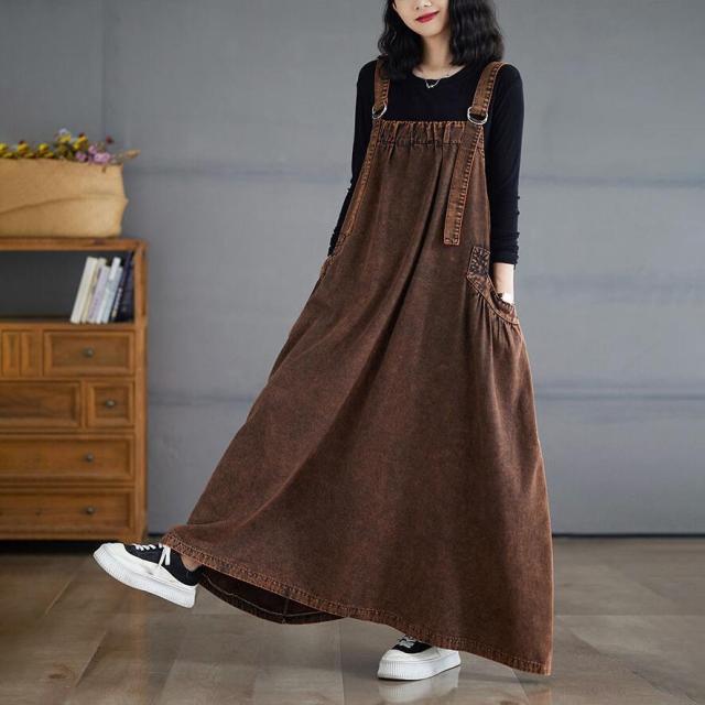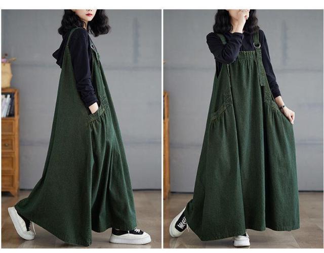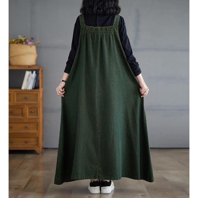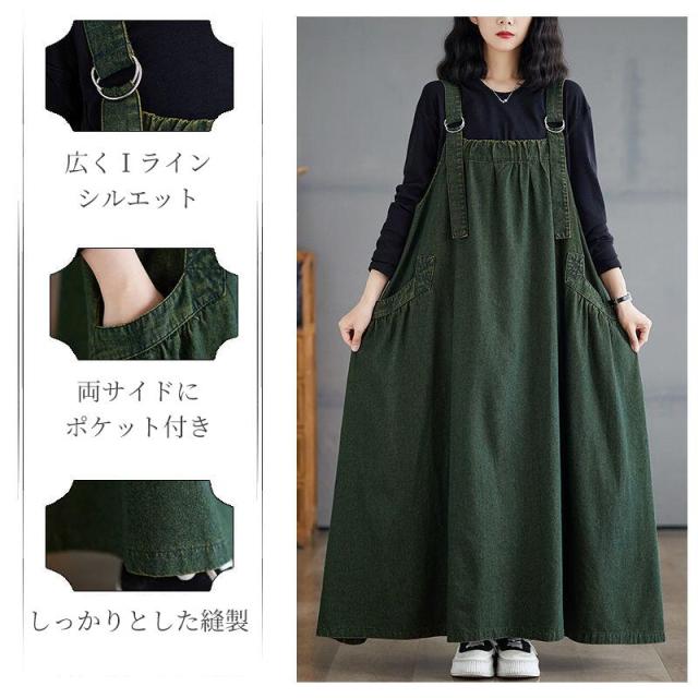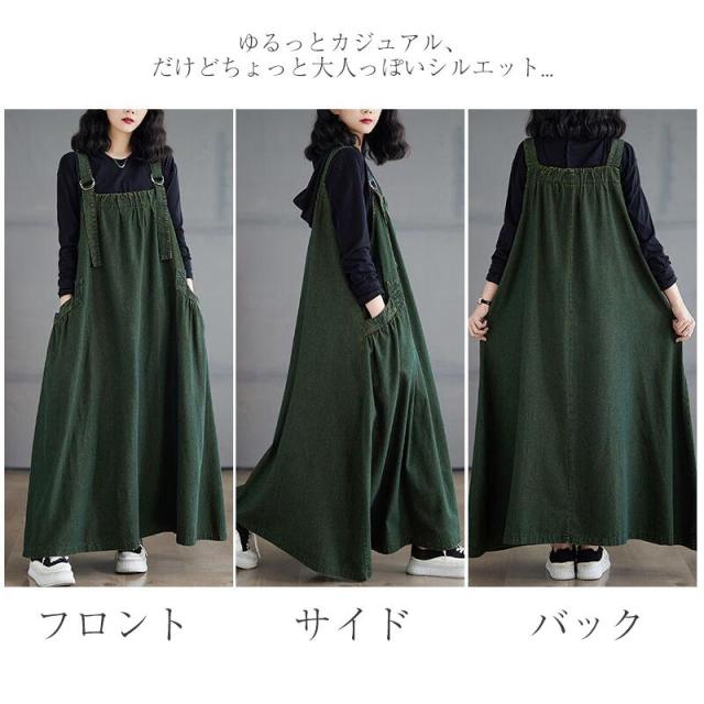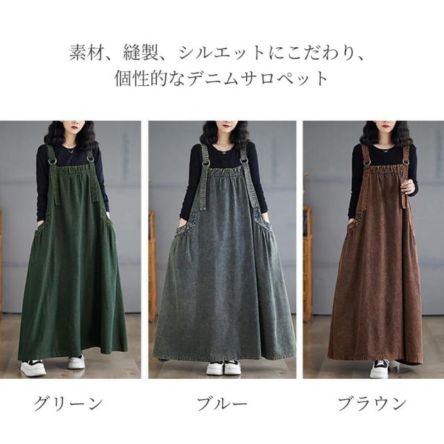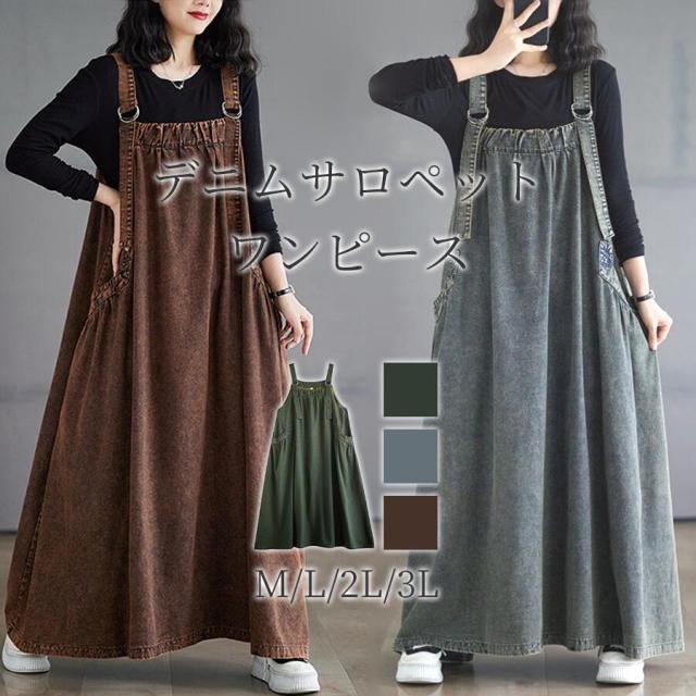 ワンピース デニム ジャンパースカート ブルー グリーン ブラウン M L 2L 3L