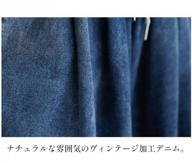 デニム ジーンズ パンツ ゆったり レディース ボトムス ウエストゴム 体型カバー きれいめ 長ズボン タック ワイドパンツ 美シルエット ゆるめ ルーズ ゆる感 ロングデニム ワイ シンプル