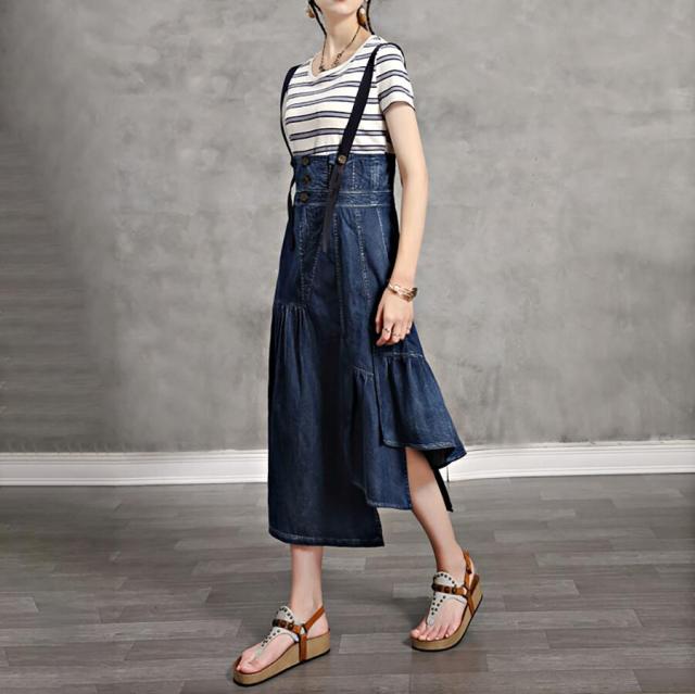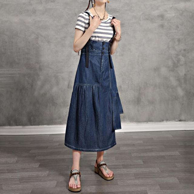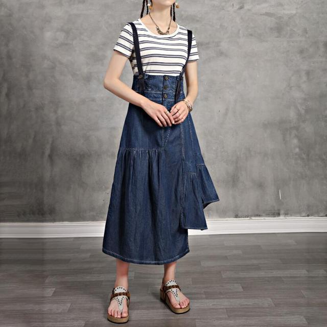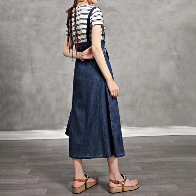 サロペット ワンピース デニム マキシ ワンピース 続々登場 S M L 2L