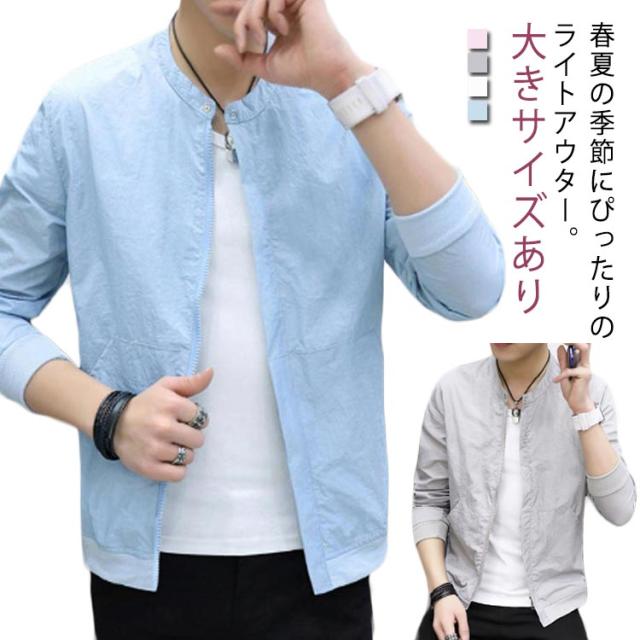 細身 ショート丈 ブルゾン 大きサイズ メンズファッション 新登場! ブルー ホワイト ピンク グレー M L XL 2XL 3XL 4XL