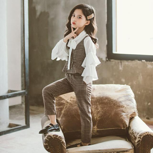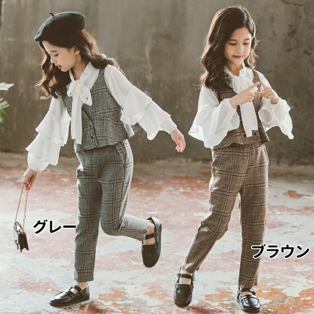 子供入学スーツ 3点セット 子供子供服 セットアップ シャツ フォーマルスーツ お洒落 女の子 スーツキッズ チェック柄 春服 ジュニア キッズスーツ 上下セット入園式 卒業式 結婚 キッズフォーマル