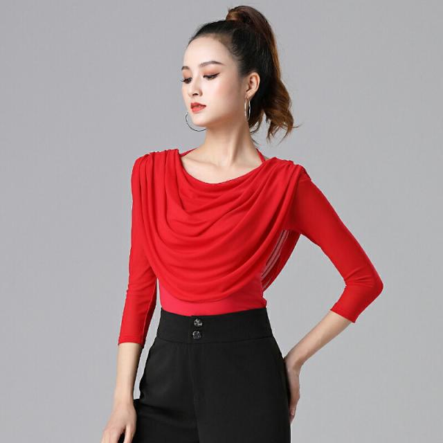 ラテンダンス衣装 社交ダンス トップス スポーツ アウトドア 豊富な品揃え レッド ブラック S M L XL 2XL 3XL