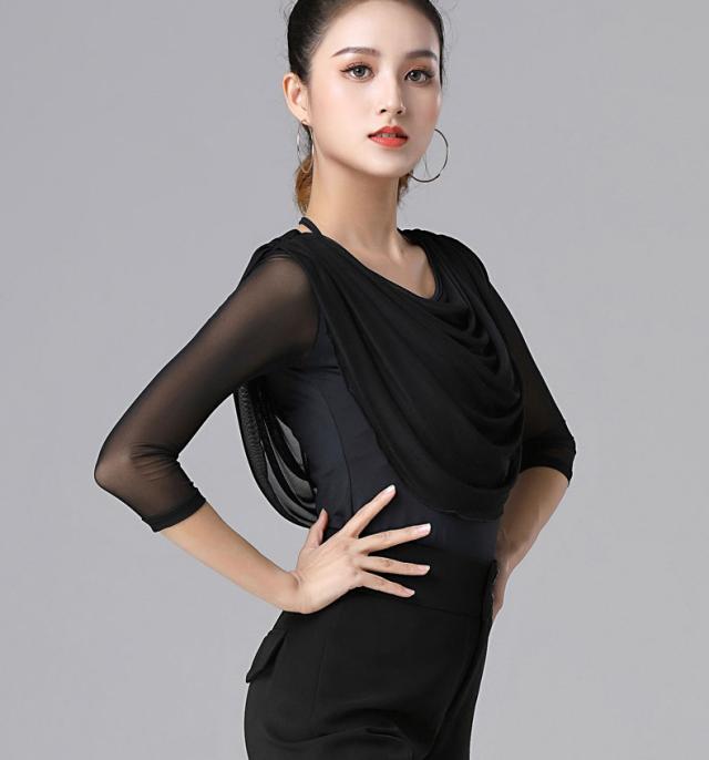 ラテンダンス衣装 社交ダンス トップス 女性 ダンスウェア レッスンウェア 長袖 競技着 上着 モダンラテンダンス用 社交 練習着 ワルツ ラテン ステージ 演出着 ダンストップス コスプ 衣装