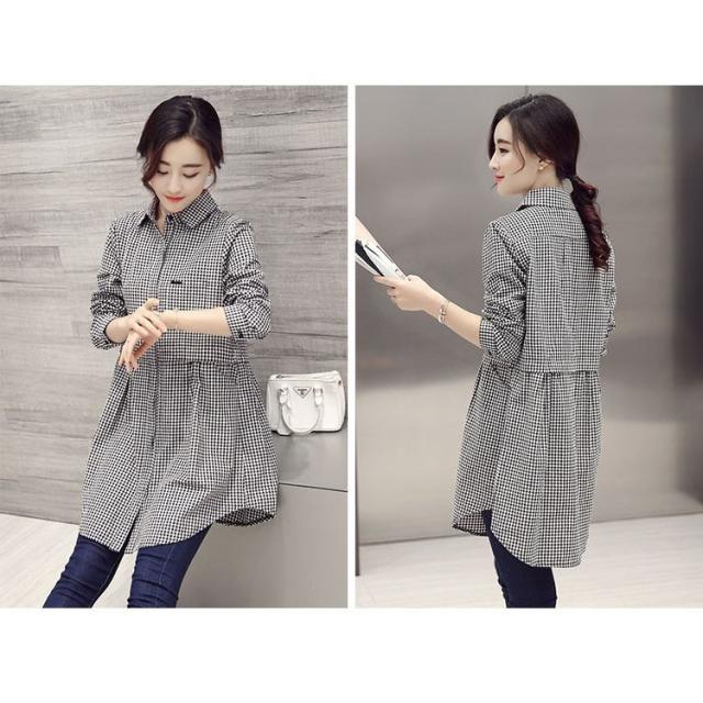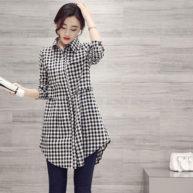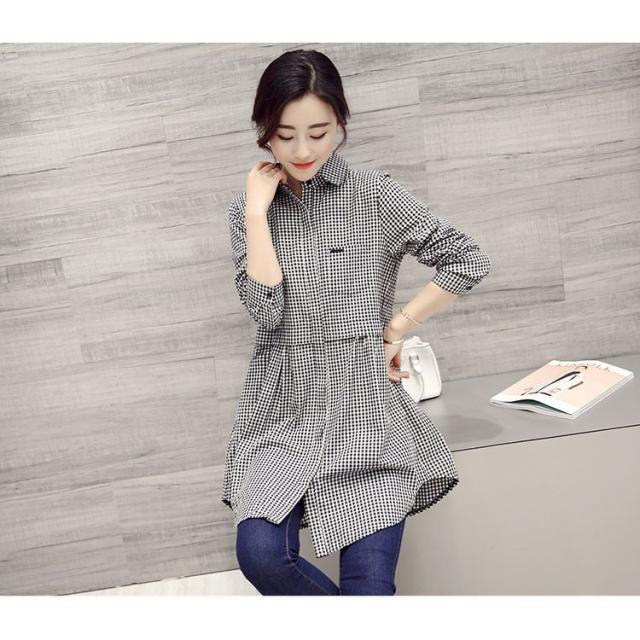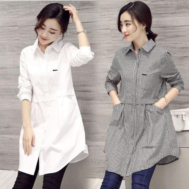 韓国風 40代 おしゃれ 白シャツ ブラウス ロング丈ブラウスチェック柄トップス 春秋 レディース シャツ 長袖ブラウス