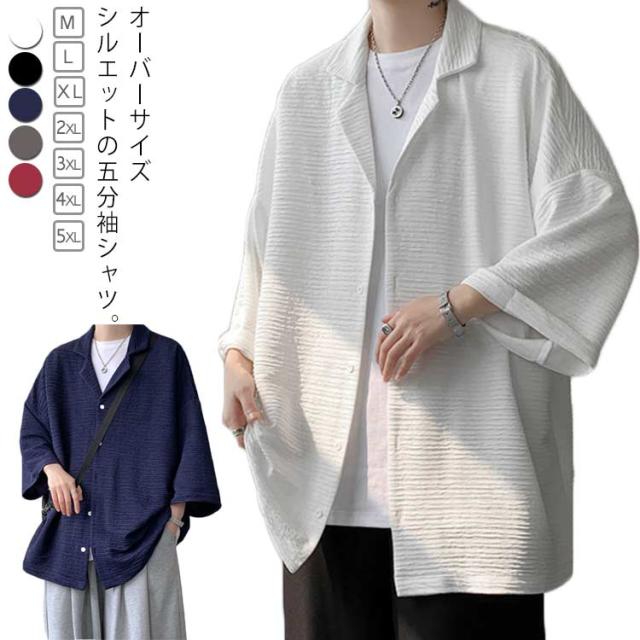 ビッグシルエット シャツ メンズ 五分 メンズファッション 続々入荷中 ワイン ホワイト ブラック ネービー グレー M L XL 2XL 3XL 4XL 5XL
