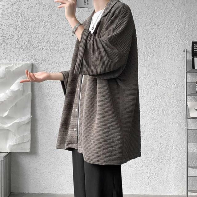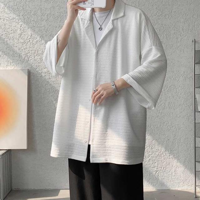 ビッグシルエット シャツ メンズ 五分袖シャツ 7分袖シャツ ワイドシャツ オーバーサイズ 羽織り サマー カーディガン カジュアルシャツ シワ感 夏服 トップス おしゃれ 大きサイズ 夏
