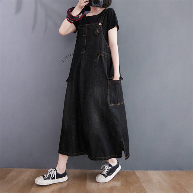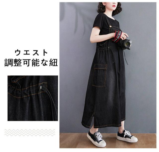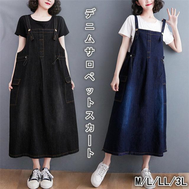 サロペットスカート サロペット デニム レディースファッション 特集 ブラック ブルー M L XL XXL