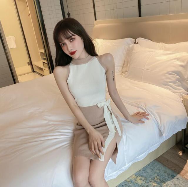 カットソー タイトワンピース ボディコン レディース リブニット ミニワンピース ニットワンピース スリットワンピース フォーマルワンピース ヒップラップ ノースリーブ